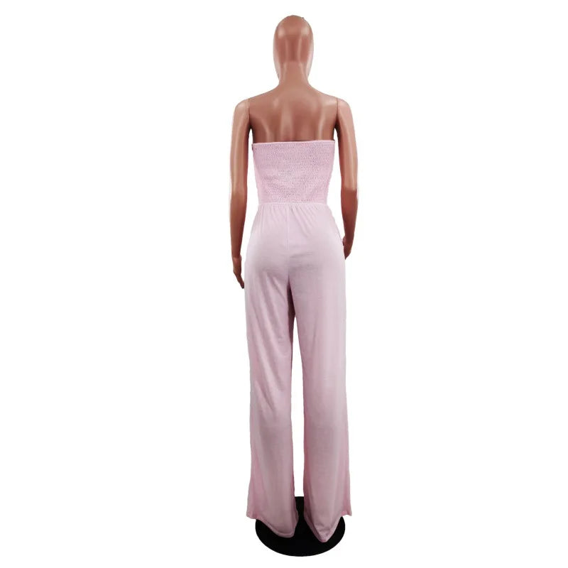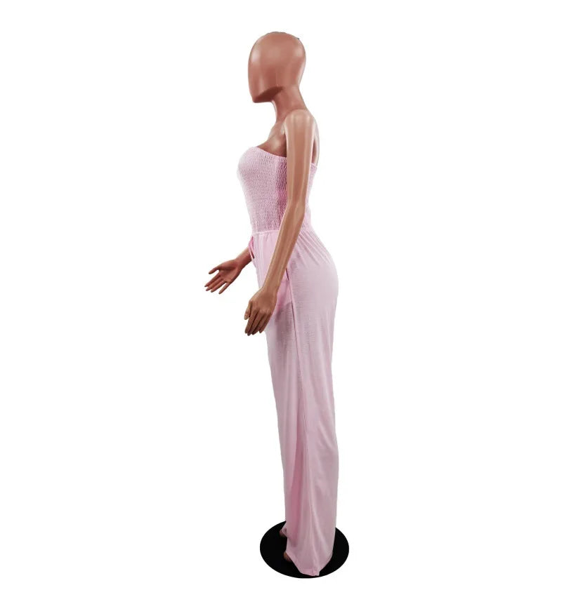 Woman Strapless Tube. Experience ultimate comfort and style with this lightweight jumpsuit. With smock bodice, adjustable waist, and wide legs, it is perfect for any occasion. Designed for a flattering fit and comfortable feel.